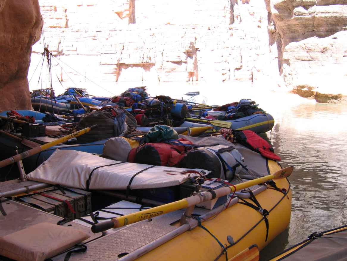 It must be someone else's party tied up at the mouth of Tapeats, our rafts are yellow.