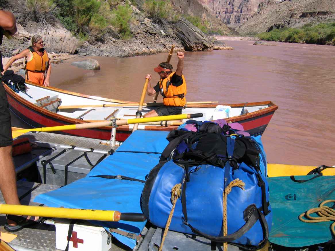 The Sacramento group returned and began pulling out one by one into the main Colorado current. I was surprised that several of them chose to make a rather hard pull out of the eddy pulling river right to avoid a rock island that was closer to river left. There was clearly a passage to the left of the rocks. No one foundered however. I heard that a few weeks later that a dory somehow managed to pile up here and eventually sink. Its always one thing or another...