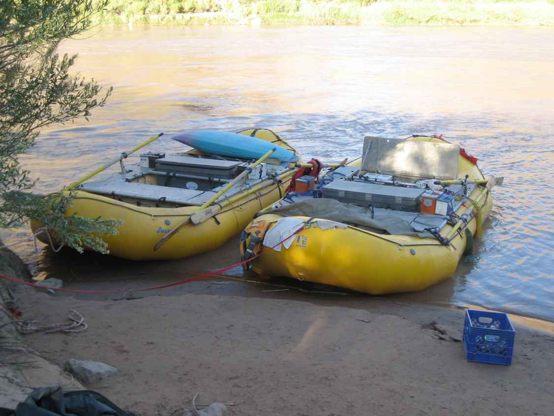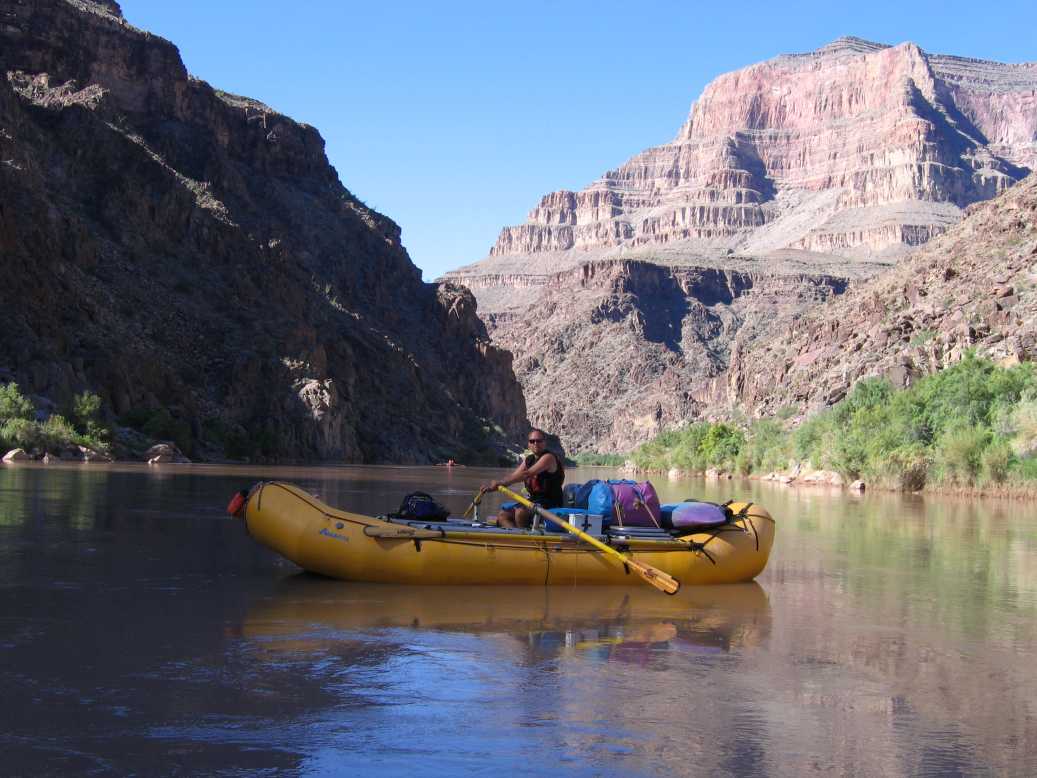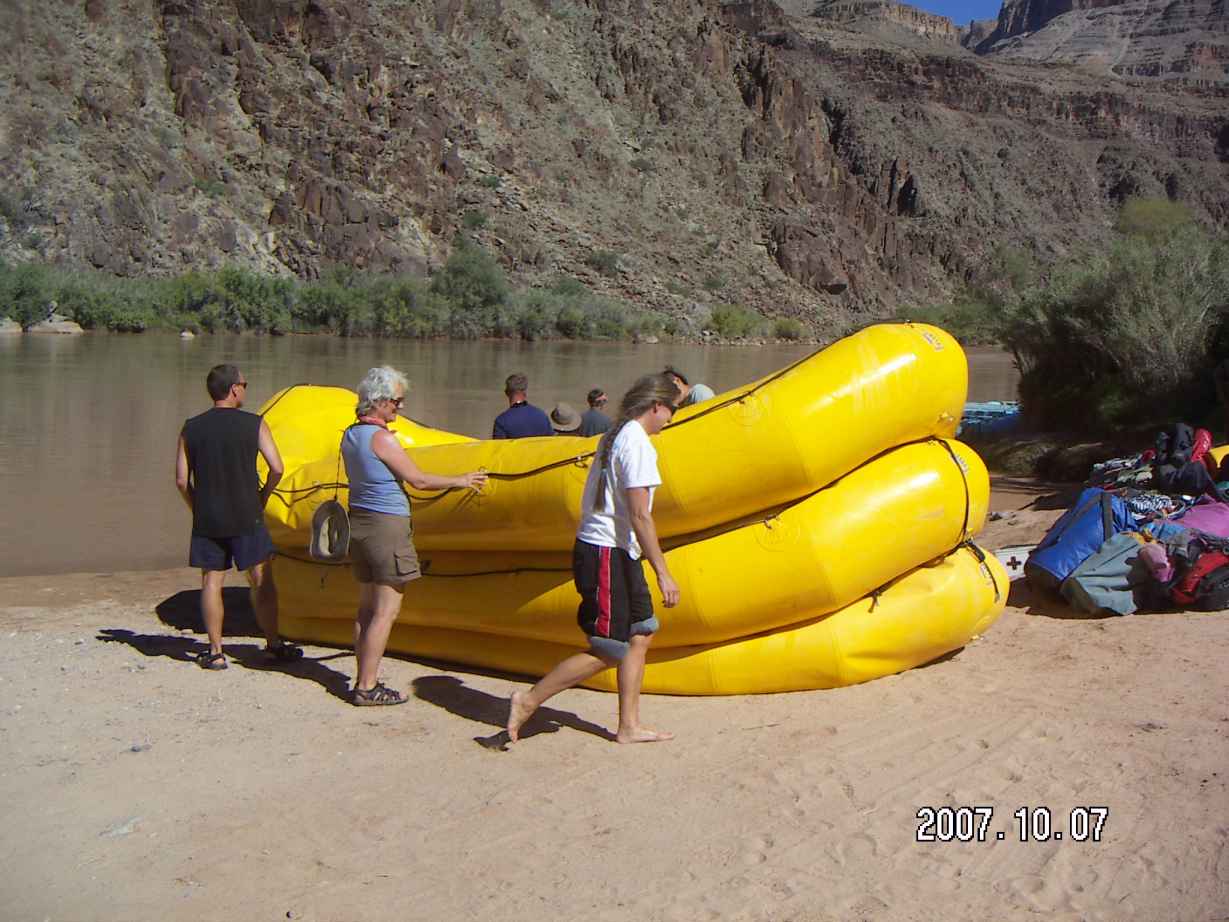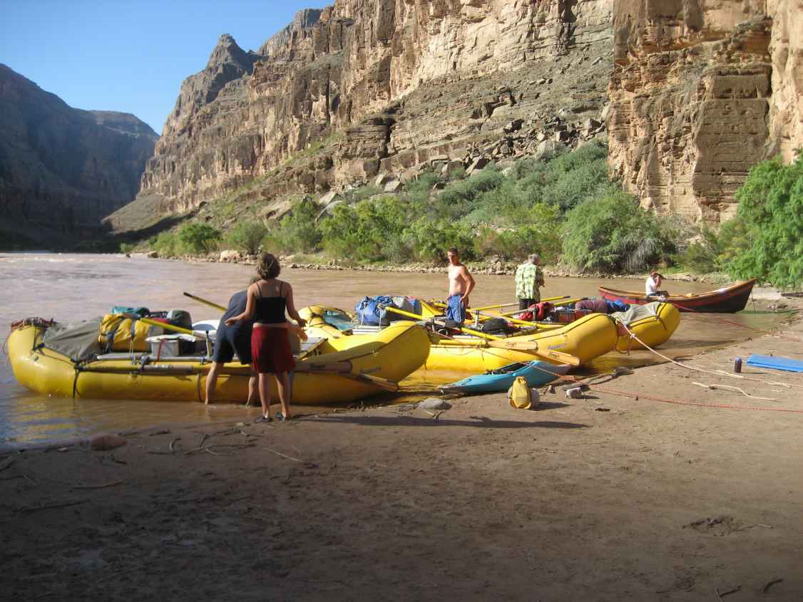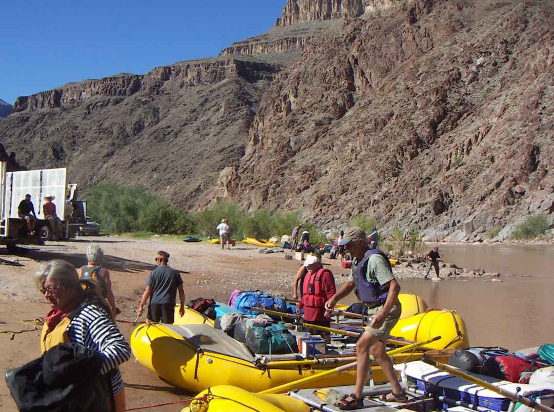 Today was a nice rowing day after the winds of the couple of days leading up to Granite Park. Our raft made the beach at Diamond Creek after Ron pulled in with his dory and Ken pulled in rowing Josha's raft just after us in front of Bill. Brady's people, Marilyn and a Vietnamese guy, arrived shortly thereafter to direct us in derigging the boats, stacking the gear and generally organizing the breakdown. Brady arrived a half an hour later with the truck which was making a good deal of racket by towing a spare tire on the ground behind the truck. Brady said that Eva's vehicle was up at Peach Springs with a possible battery problem.