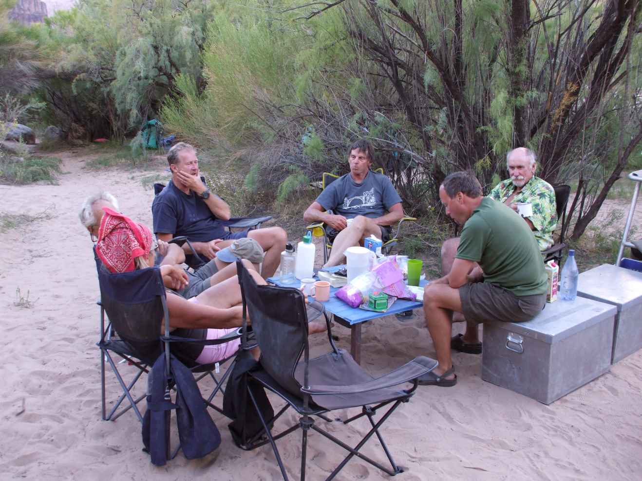 We made breakfast as per usual and organized a search through all the rocket boxes to locate any previously unknown coffee. Running out of coffee would be an especially ugly turn of events having made it this far every morning and most evenings brewing and enjoying some fine coffees - what utter pigs we were by this point.We loaded and launched the boats and began our float to Parashant, over 16 miles away but no real rapids to run. It became more windy as the day passed and by that afternoon, we were rowing against a stiff breeze. We got to camp and were grateful that our rowing day was done. We set up the kitchen in a protected area at the base of the cliff and set up sleeping quarters behind various protective pieces of plant life. Hikers went up Parashant Canyon while the rest of us took some shelter from the wind next to the cliff face or rested in our tents. That night, the wind continued. The temperature began to noticeably drop.