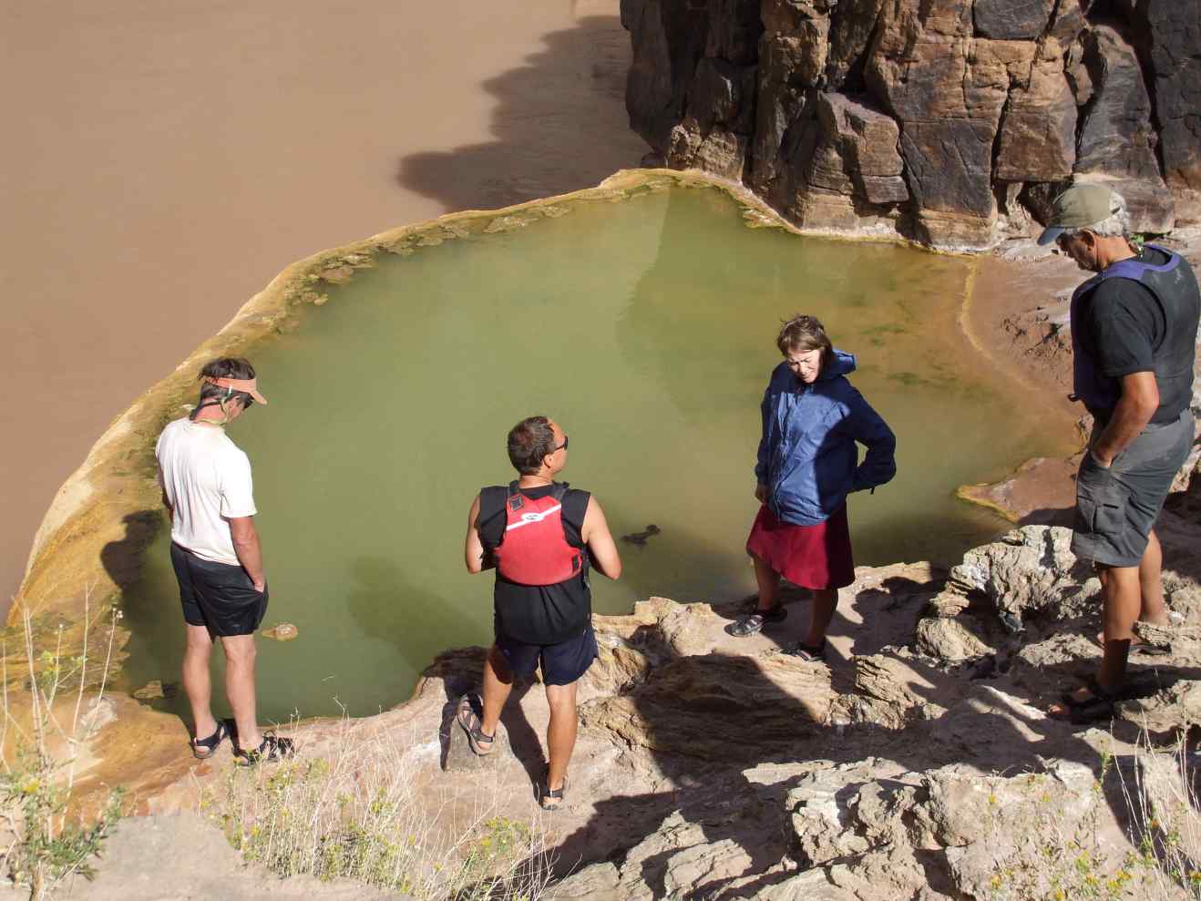 That afternoon, we pulled in at Pumpkin Springs and stepped ashore to investigate the rather ornate pool. I told the others about the rock warrens that were downstream just a short distance and we looked at and climbed in those also. We passed Three Springs Canyon, went through a couple of rapids and by early afternoon were at Upper 220 Mile camp where we pulled in, set up the kitchen and spread our sleeping gear out on the beach. That night the stars were out and we saw a bunch of satellites. Our river time was now way too short.